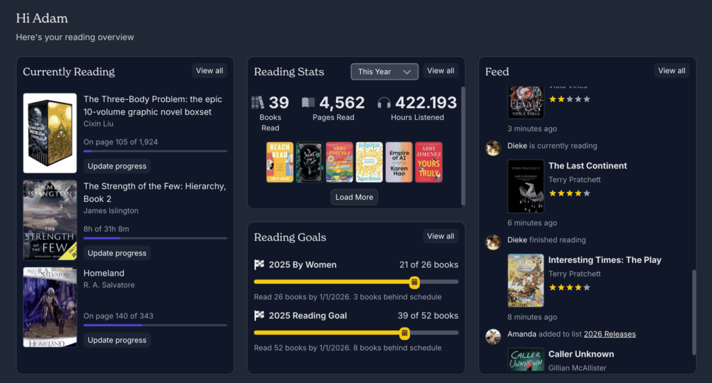 It’s been a while since we focused too much on supporter features, but we do have a few penciled in for 2026. My personal favorite Supporter feature today (besides the flair) is being able to sort any group of books by Match Percentage. Whenever I look at someones profile, I head over to their Read books page and sort it by Match Percentage to see what books Hardcover thinks I’d enjoy the most.
