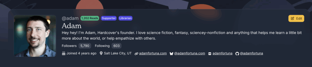 As a fledgling startup, we can use all the help we can get, whether that’s becoming a Supporter, sharing Hardcover with a friend, or just following along. Supporters get full Librarian abilities and access to Support and Librarian channels on Discord by linking roles.