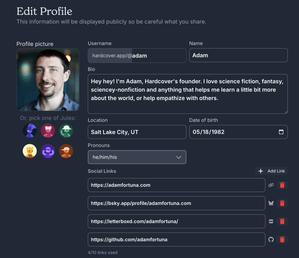 This month we welcomed 5 new team members! 🥳 Every single person I’ve interviewed for roles at Hardcover has brought so much enthusiasm and love for the project, it’s been tough to narrow them down. For this batch, we brought a 5 people who are getting settled in: