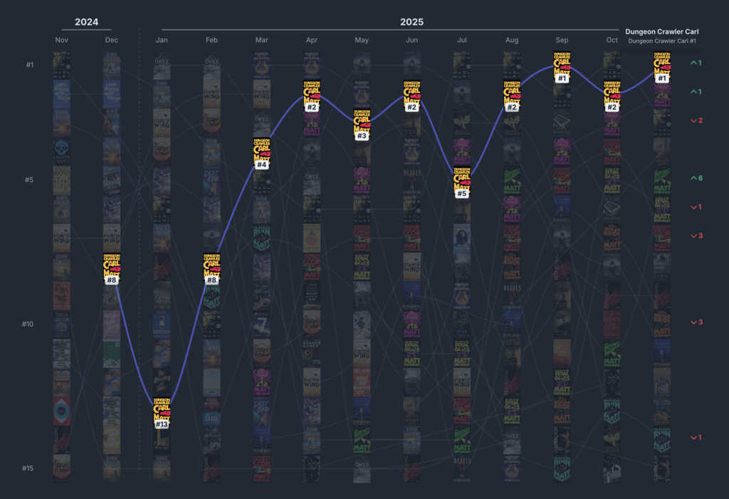 Yes, Dungeon Crawler Carl took over three spots in our top 5 this month! The total of these three exceeds Project Hail Mary, but PHM edges out at the single book level.