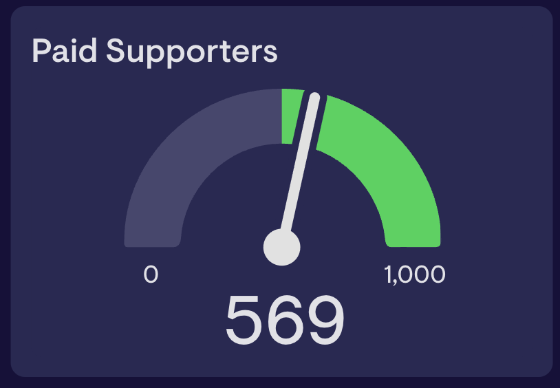 We’ve set a goal for the year of getting to 2,000 subscribers (!). That seems ambitious for the moment, but we have a lot of fun ideas ahead of us that we’re excited to build. 🛠️