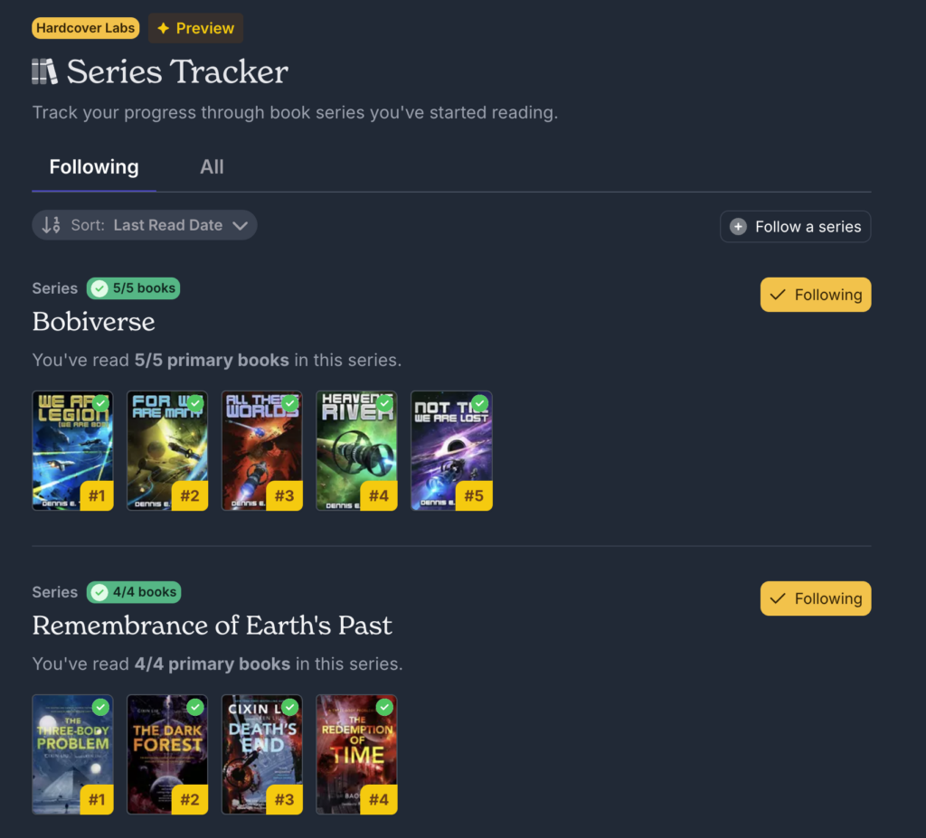 By popular demand, @emma brought back the Series Tracker as a Labs feature! You can quickly see how many books you’ve read in each series you’ve started.