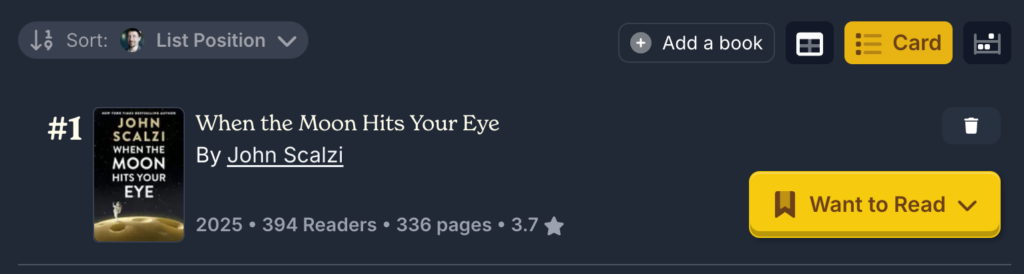 You can now add and delete books directly from the list page — no need to navigate away to manage your list contents. This is something that has tripped up new users on Hardcover for a while, since this was previously managed only through the Book Button > Add to Lists page. This puts it front and center on the List page.