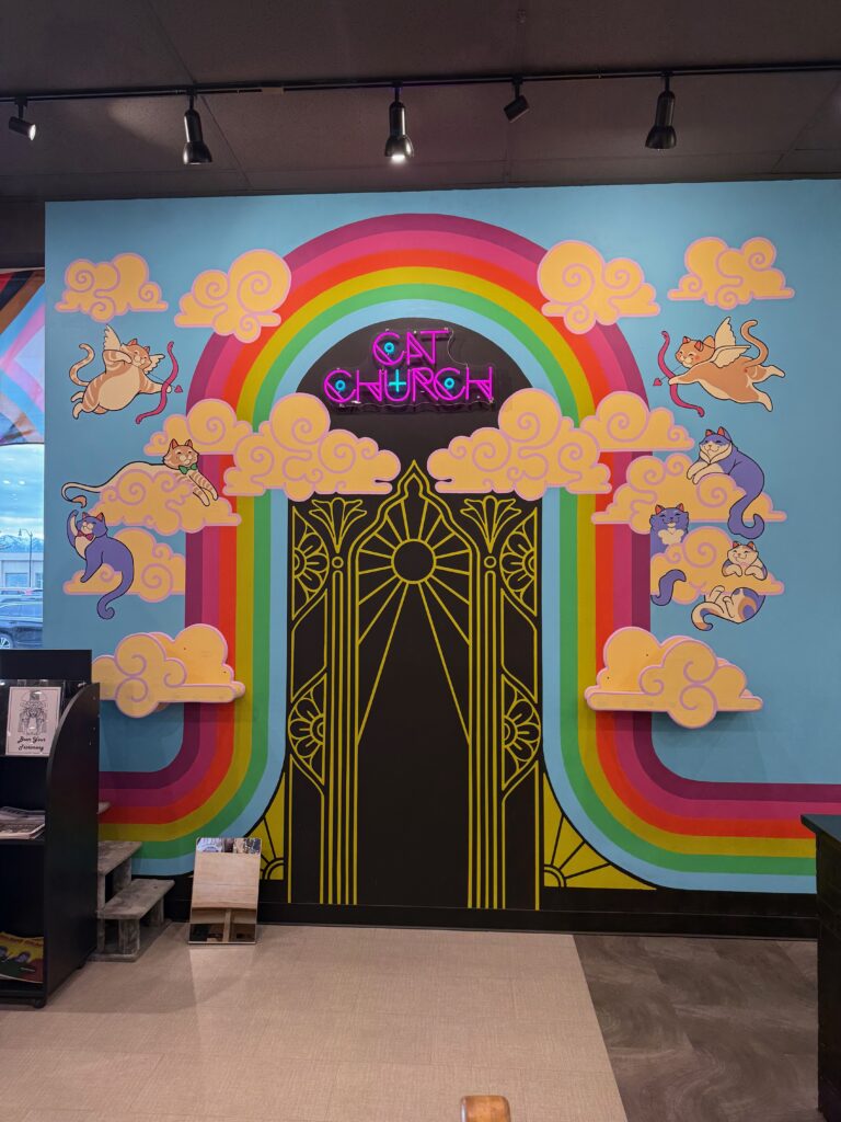 Our local vintage store here has a Cat Church – complete with church pews – and cats of course. Love the colors and had to share. 😂