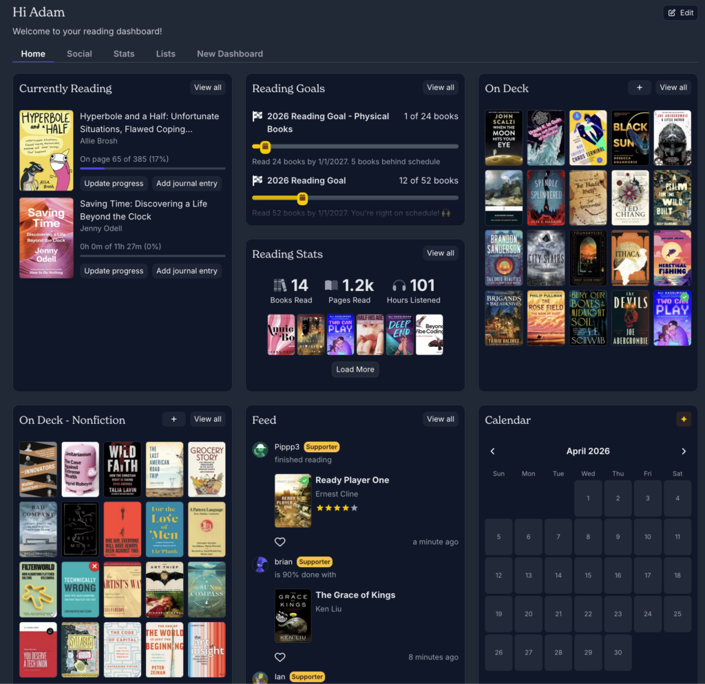 I’ve used Goodreads since 2009. Every book I’ve read since then has been tracked, as well as over 400 books on my “to read” list that I’ve added over the years. During that time Goodreads has barely changed – at least for anything I use. The only change that’s impacted me in the last year has been the removal of their API which further locked in people using their service.