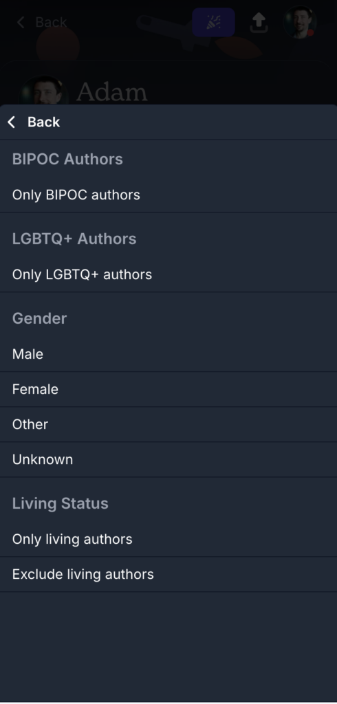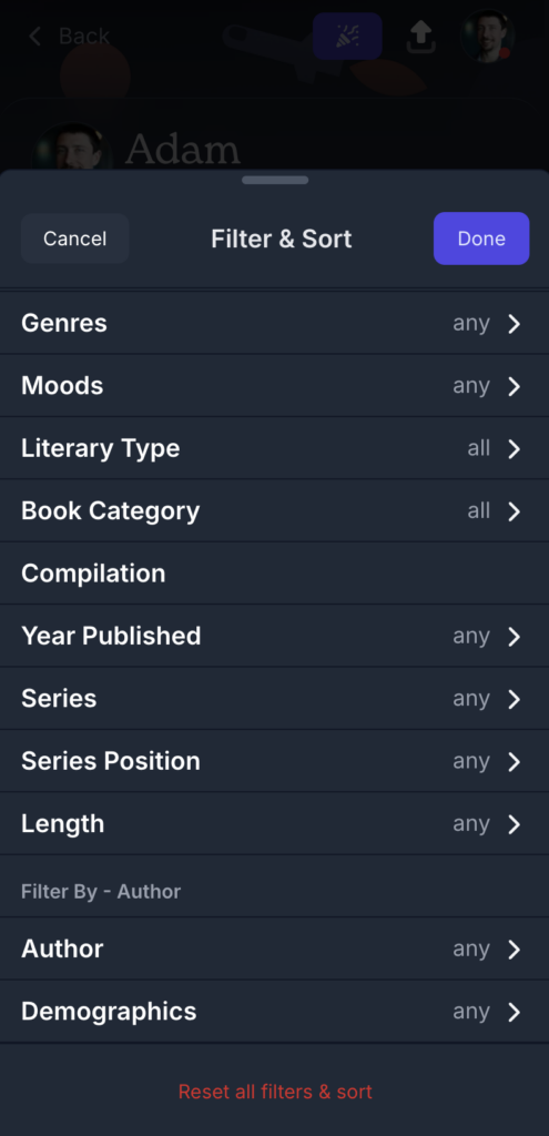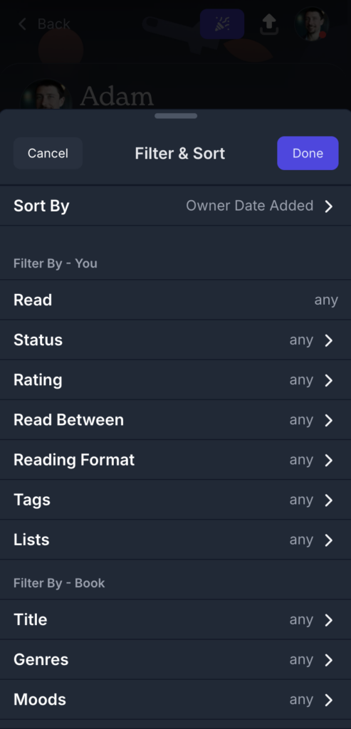 Book collection filtering is now available across all pages that display book lists — not just your library. That includes: Your library (Want to Read, Read, Currently Reading, Did Not Finish), lists, goal, prompt, author, publisher, character, series, trending, upcoming & recently released books. Whew, that’s a lot of pages!