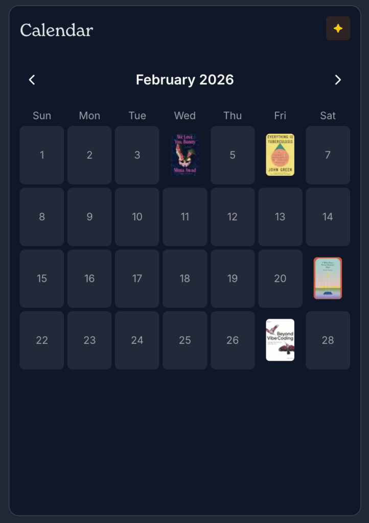 Calendar Widget — Now shows up to 3 books instead of 1, with pagination for better performance